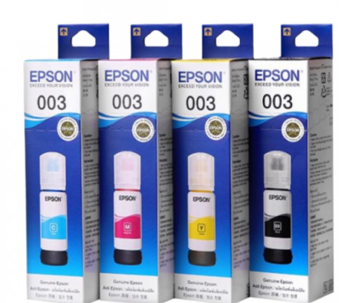 Epson Ink 003 Original set includes Cyan, Magenta, Yellow, and Black cartridges for Epson L3210 / L3250 / L5290 / L1210 / L1250 , designed to deliver precise color reproduction and sharp text quality. Engineered for compatibility with select Epson printers, these inks ensure consistent performance and longevity, making them ideal for professional printing needs where accuracy and reliability are essential.